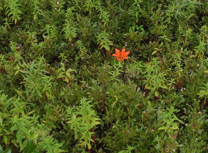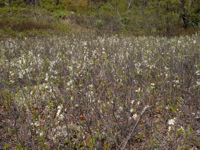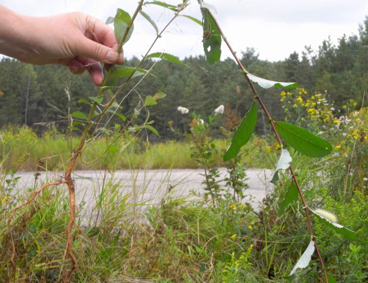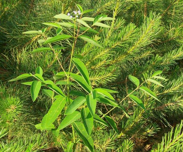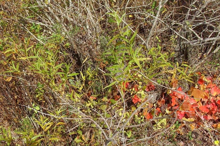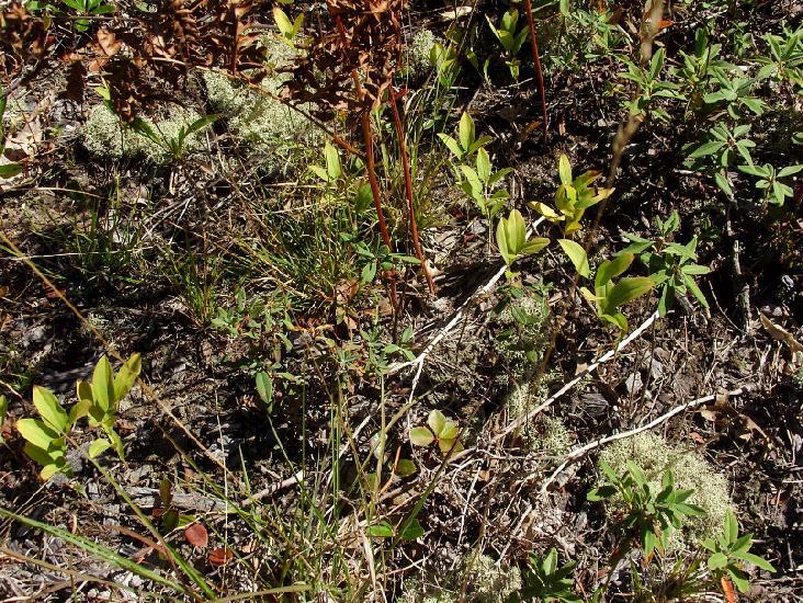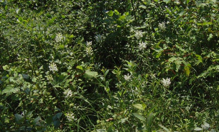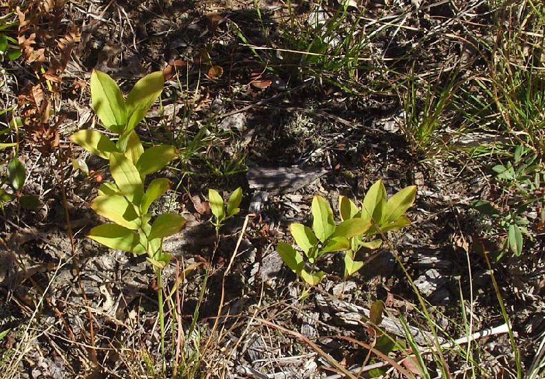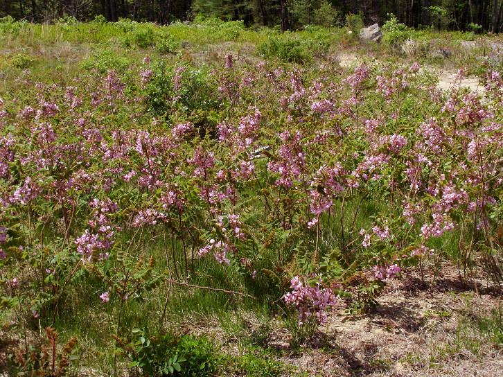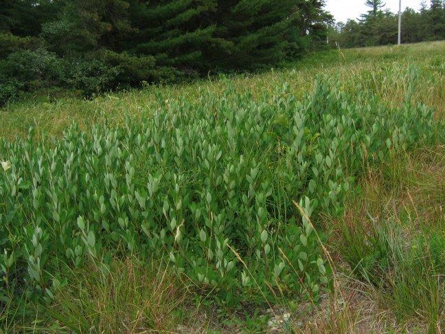 Survey: ['Maianthemum canadense', 'Apocynum androsaemifolium', 'Aralia hispida', 'Lythrum salicaria', 'Rubus allegheniensis']