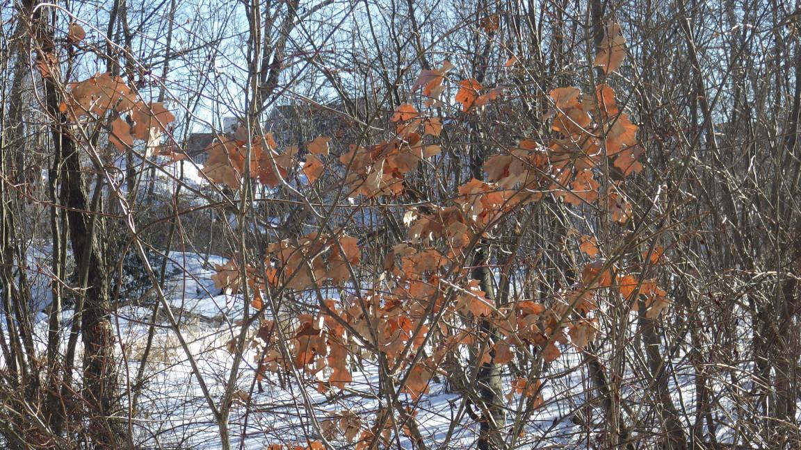 A solitary scrub oak in an odd habitat: on a brook bank, rather close to water
