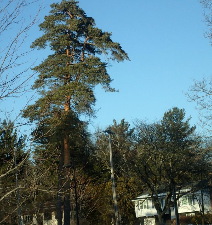 This large pine dwarfing an electric pole has been doing exceptionally well for a Scotch pine in New England