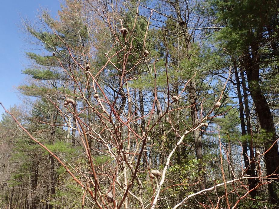 Common galls of highbush blueberry made by blueberry stem gall wasp (Hemadas nubilipennis). Photo 3 of 4